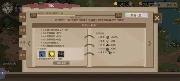 嘿嘿,充值这里不详细描述,游戏里面可以看到。反正VIP等级越高,特权越好。另外说一下,任意充值都计入VIP等级积分,所以买各种礼包是最划算的。