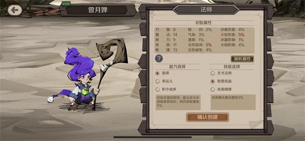 能力选择一般推荐幸运儿,毕竟幸运这种东西谁不想要呢。技能选择我推荐法师选择天才法师,牧师推荐医者仁心,狂战士推荐鲁莽之人,圣骑士推荐久经沙场,咒术师推荐先发制人,巫术师推荐吸血鬼,弓箭手推荐驭兽者。