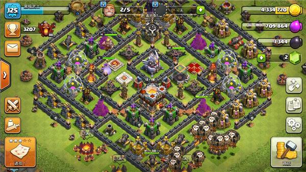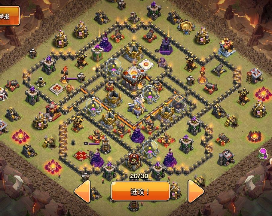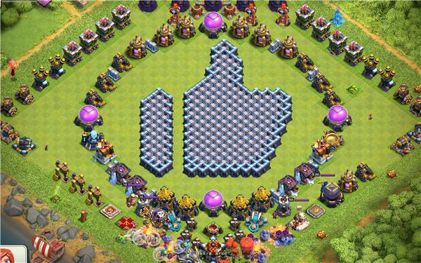 升级防御端建筑:城堡(援兵参与守家)、王(王的体力就绪时参与守家)、加农炮、迫击炮、炸弹塔、箭塔、法师塔、电塔、X弩、地狱塔、天鹰火炮、火箭、空气炮、各种陷阱和墙。加粗的防御建筑都是陆空兼顾,优先升级;火箭空气炮只能对空,但后期防御龙流和电龙的时候,就要仰仗这俩了。