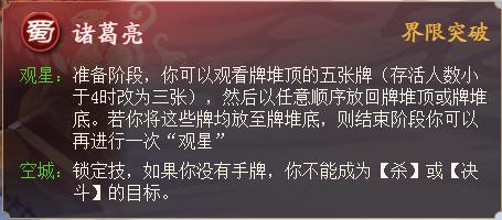 注意点2:在〖观星〗技能的效果描述里出现了该技能的名词,但是此技能效果中的〖观星〗仅执行该技能的部分操作和效果,所以笔者在描述中进行了区分。