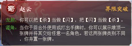 注意点2:此技能为无消耗的触发类技能,当赵云选择发动技能后,必须亮出牌堆顶的一张牌,然后再执行后续操作。