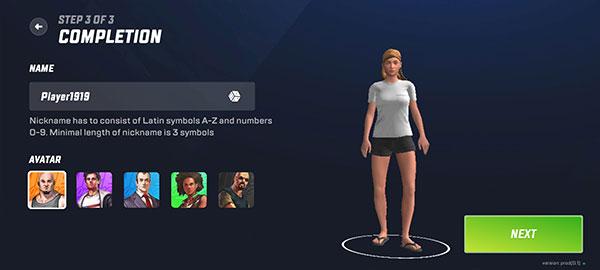 3、给角色选择一套衣服,可以作为初始的免费服装,确定好后点击NEXT进入下一步。