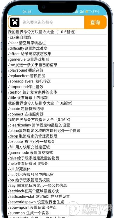 5、大家也知道我的世界是支持输入指令的,而我的世界饼盒app中内置了大量的指令玩家搜索即可复制导入游戏。