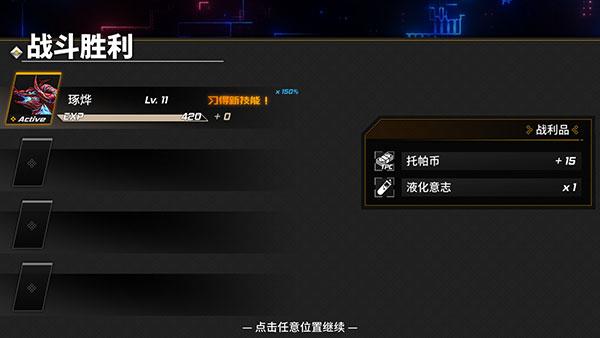 5、击败敌方角色之后就可以获得战斗胜利了,结算界面也会显示我方角色获得的经验值和战利品情况。