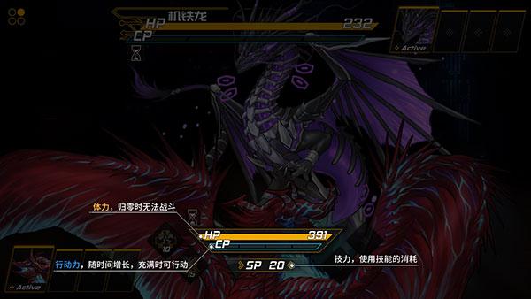 3、战斗界面的下方显示的是体力:归零时无法战斗;行动力:随时间增长,充满时可行动;技力:使用技能的消耗。