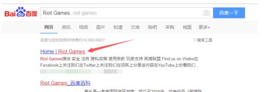 搜索“Riot Games”找到并打开拳头游戏的官网。