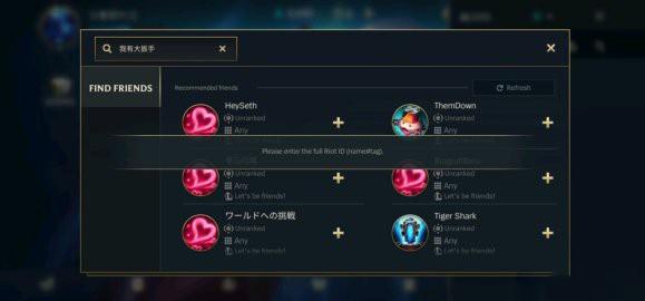 如果你的你诚实提莫队长,那添加好友那里要输入“提莫队长#1234”这种才行。