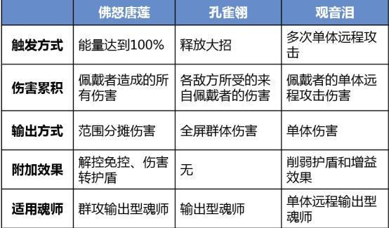 细心的魂师大人一定已经发现了,佛怒唐莲的伤害机制同孔雀翎和观音泪有着相似之处,那么和这两者比较,佛怒唐莲有什么出众之处或较弱势之处呢?小编这里对这三种暗器的能力特性进行了一下总结和比较。