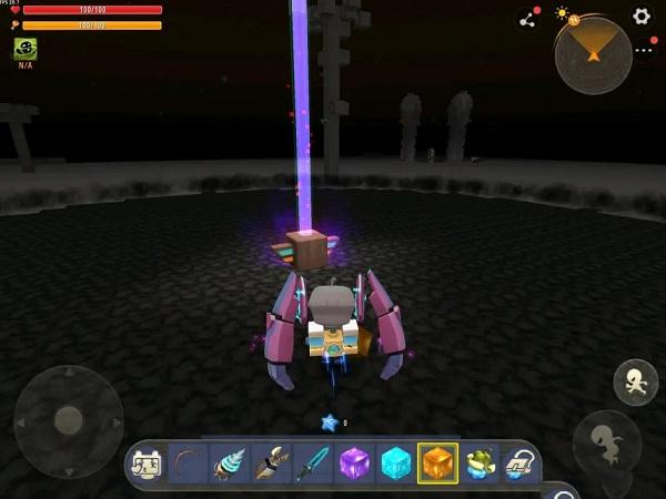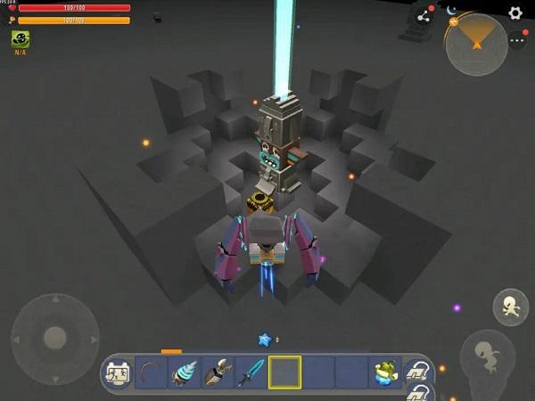 等一切都准备好后,玩家就可以乘坐飞船来到萌眼星,在远古巨人图腾前后左右四格的地方分别放上四种不同的方块,其中蓝钻块放在图腾的正面,紫荧石块放在图腾的背面,孔雀石块和星铜石块分别放在两边。