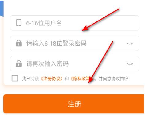 输入用户们和密码即可注册成功