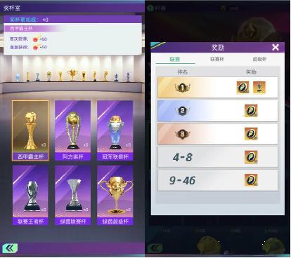 如图所示,其中西甲霸主杯和阿方索杯获取难度较低,通关游戏内日常玩法主线即可获得,这也是咱们经理奖杯战力加成的主要部分;除此之外一周开启两次的杯赛玩法,也欢迎各位经理踊跃报名,实力比拼勇冠第一,即可获取联赛王者杯,绿茵联赛杯、与绿茵超级杯哦,增加战力的同时,一起来比比看谁的奖杯更多吧!荣耀殿堂玩法及配队引申根据球队位置分类,各位经理可将培养的球员设为荣耀球员,四个位置上限分别可以放入6位球员。