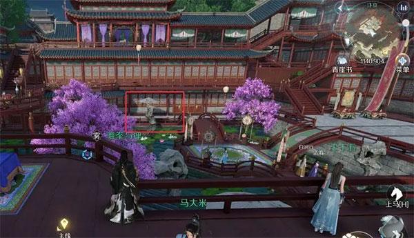 月影碎空甜水巷传送点落地(1157,968)开个宝箱,会获得传闻,怡红背后的这个就是了。