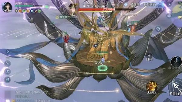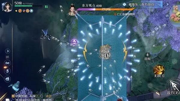 通过地面阶段后就是飞天阶段,时刻注意躲避技能,不断调整自身位置。上天以后除了正常射出音刃攻击外,记得使用获得内力屏障技能,有3秒的无敌时间,此外燕回风也能够无敌0.5秒,副本过程中需灵活运用。