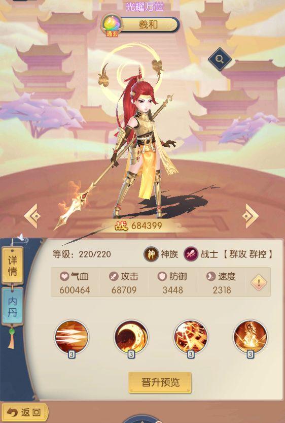 己方英雄常规主动行动时,羲和发动一次普通攻击,每回合最多触发3次(3级)