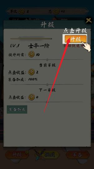 2、点击屏幕赚钱并用于提升实力,通过挑战对手获得金币等奖励。