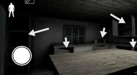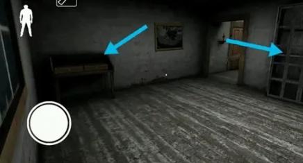 下楼梯后左边的地板上有一根黑线,从上面走过铃铛会响,需要注意。楼梯旁的柜子里可以躲,柜子对面有一个门,里面可能刷东西。柜子旁边有一个门通向地下室(由于画面较暗,所以不大容易发现),同时奶奶的出生地就是地下室,所以萌新不要一开始就往地下室跑哦。最后说明一下,以后就不提示了。墙上的画,照片,小物件等都是可以被碰掉的,所以走路时尽量不要贴墙。
