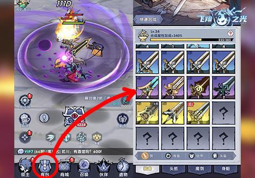 背包还具备“快速合成”功能。当玩家在游戏里收集了一大堆武器、防具,尤其是大量同类装备以后,可以通过快速合成功能,将低阶装备合成为高阶装备,从而一键实现战力的提升。